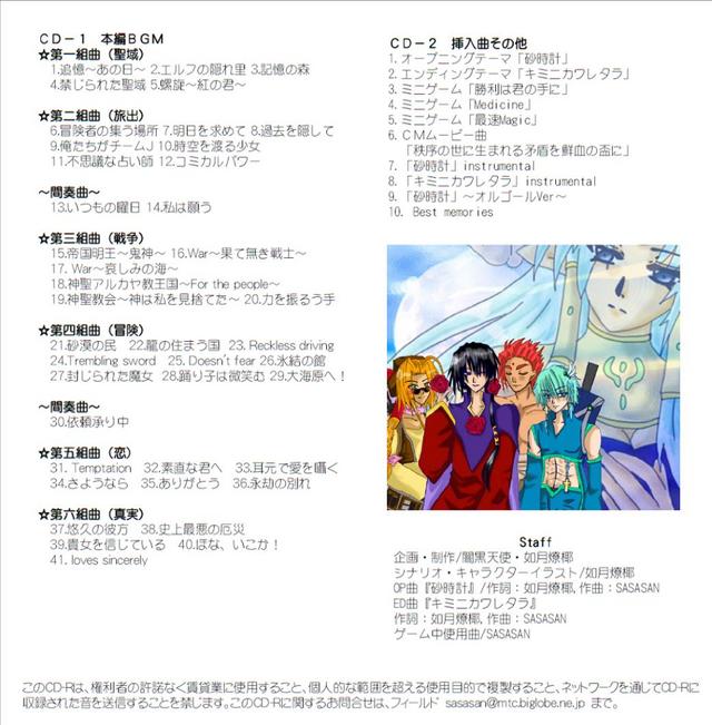 2CD | 1500円 | 全51曲。 サントラCD用アレンジ。 OP・ED・CM曲(初音ミク)フルコーラス SASASAN様のサイトでもご購入頂けます。 |